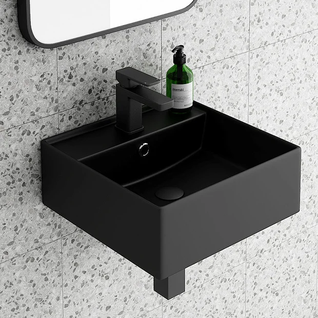 Arezzo 405mm Matt Black Square Wall Mounted / Counter Top 1TH Ceramic Basin