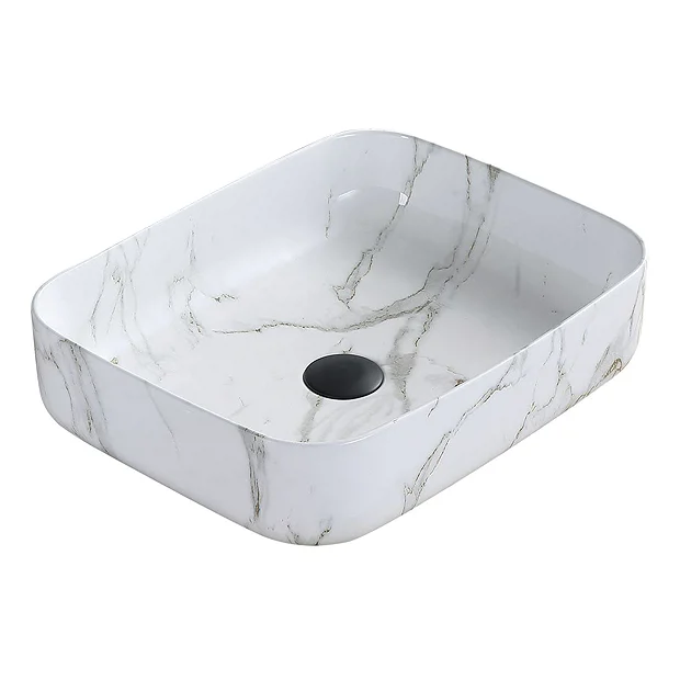 Arezzo 500 x 390mm Gloss White Marble Effect Curved Rectangular Ceramic Counter Top Basin – 0 Tap Hole