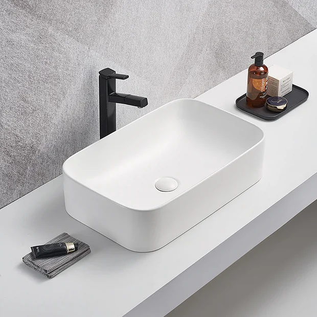 The eye catching luxury Arezzo matt white counter top basin has a stylish contemporary curved rectangular shape, perfect for creating a boutique feel in your bathroom. Designed to be mounted onto a worktop console and is best complemented with a high rise basin mixer or wall mounted tap. Some small dimensional variation may occur due to manufacturing tolerances. Waste not included.