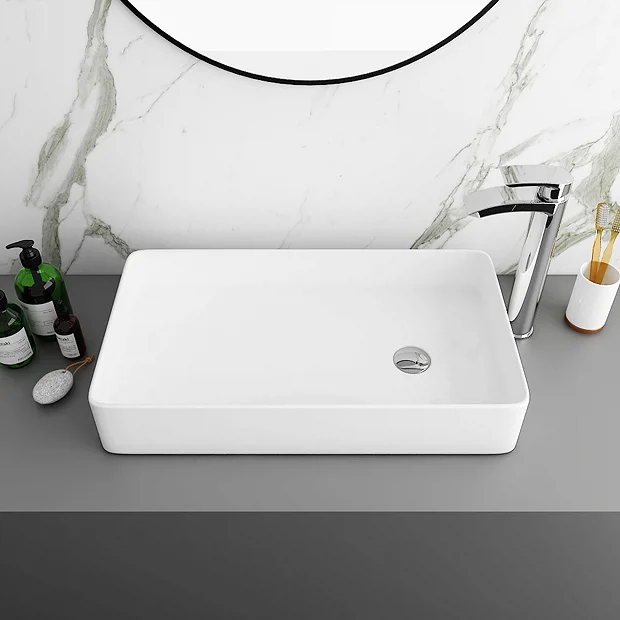 The modern shape of this stylish slim rectangular counter top basin will create a contemporary feel in any bathroom. Made from high quality vitreous china with a high gloss white finish, the basin is perfect for counter tops and is best complemented with a high rise basin mixer or wall mounted tap. Some small dimensional variation may occur due to manufacturing tolerances. Waste not included.