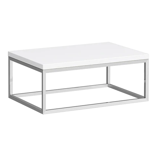 The smart space-saving Arezzo 700mm wide stone resin gloss white wall hung counter top basin shelf features minimalist clean lines. Supplied with a supporting polished chrome steel towel rail frame, perfect for creating a stunning, fashionable and chic bathroom interior. The practical square frame provides a space to hang your towel, keeping it close to hand. Complete the look with one of our stylish counter top basins, chrome basin taps and exposed bottle traps (not included).