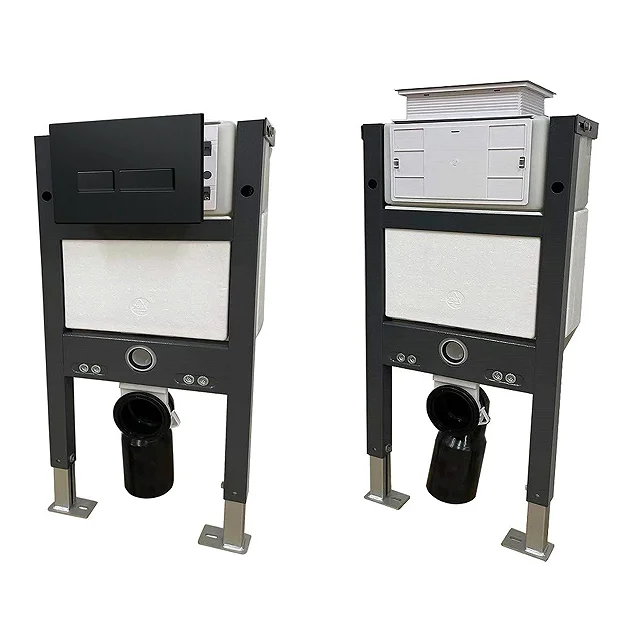 Our Compact Top or Front Flush Toilet Fixing Frame with Dual Flush Cistern is an essential addition to any new wall hung toilet. This clever frame allows you to plumb your new designer toilet into a wall in your bathroom for a luxurious floating effect. Its practical design provides your new wall hung toilet with the ability to flush away waste efficiently. Supplied with a matt black flush plate with square rectangular buttons.