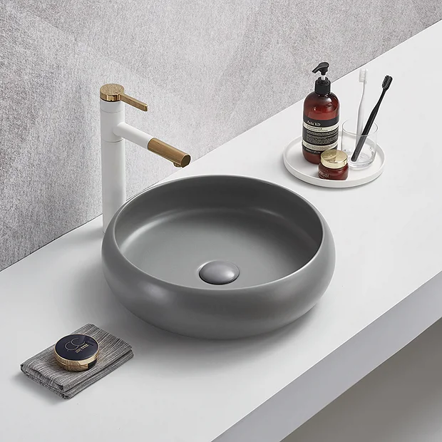 The modern curves of the Arezzo matt grey round curved edge counter top vessel basin will make a bold visual statement in any bathroom. Made from high quality vitreous china, the basin is perfect for counter tops and is best complemented with a high rise basin mixer or wall mounted tap. Some small dimensional variation may occur due to manufacturing tolerances. Waste not included.