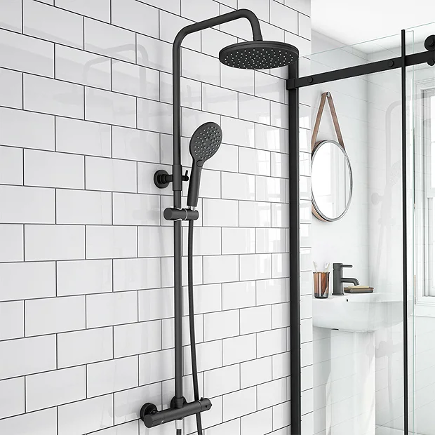 Spruce up a tired bath shower area with the round Arezzo matt black Shower Bath and Exposed Shower Pack. The B shaped shower bath gives you room to stretch out when washing, extending to a roomy 1700mm length. It’s finished in a contrasting matt black and gloss white for a modern look, comes complete with a hinged bath screen that prevents fixture damaging splashes when using the accompanying matt black shower. Its thermostatic function prevents scalding – so you can feel completely safe. Use the handset and slider for an adjustable height, or the round fixed head for a rainfall effect that gives fuller body coverage.