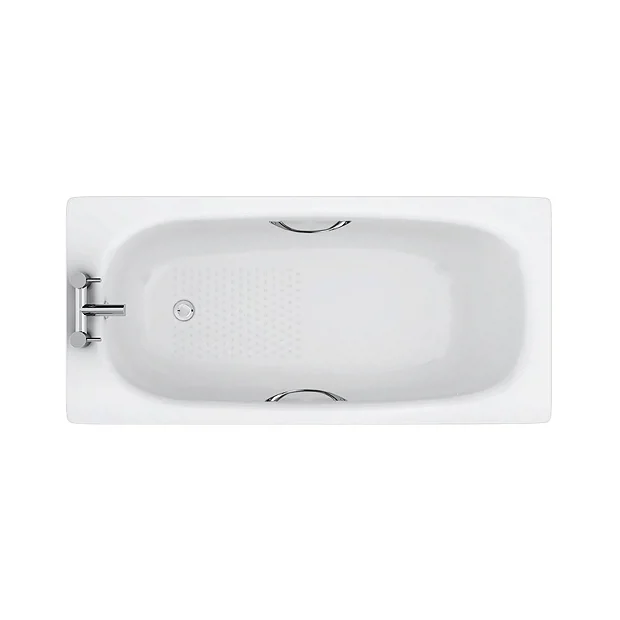The stylish Aurora Steel Enamel Bath made from enamelled steel for durability. This incredibly strong and hard-wearing 2 taphole 1500 x 700mm bath comes with a pre-drilled waste and overflow holes. Features chrome plated grips and has a slip resistant finish that reduces the chances of slipping.