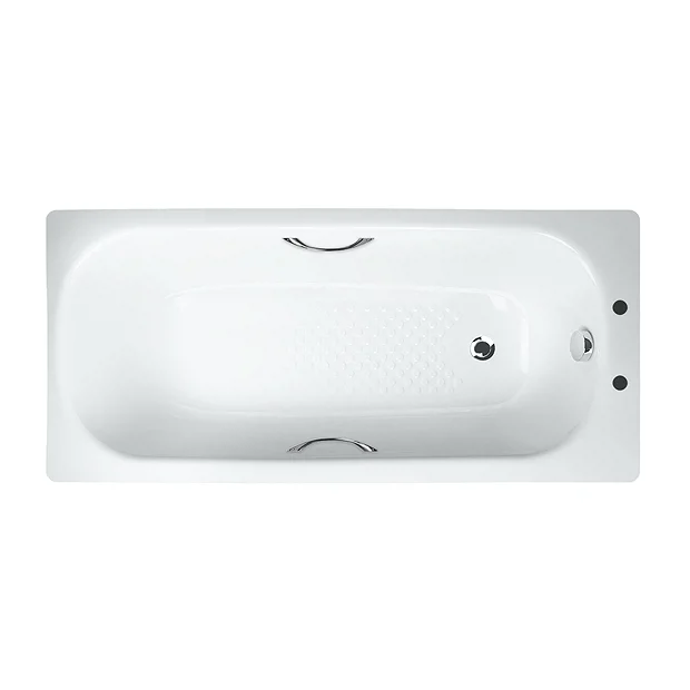Aurora 1600 x 700mm 2TH Steel Enamel Bath with Grips + Anti Slip