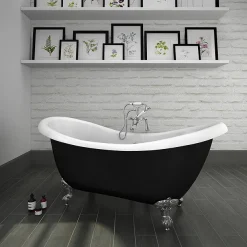 Victorian Plumbing Earl Black 1750 Double Ended Roll Top Slipper Bath W. Ball + Claw Leg Set