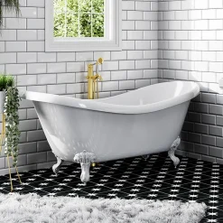 Victorian Plumbing Earl 1750 Double Ended Roll Top Slipper Bath + Brushed Brass Leg Set