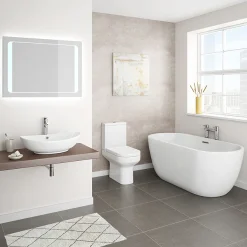 Victorian Plumbing Bliss Modern Double Ended Curved Freestanding Bath Suite – 2 Basin Size Options