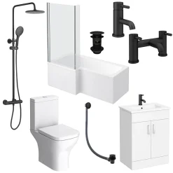 Arezzo Matt Black 900mm Quadrant Shower Suite With Matt Grey Vanity Unit + Modern Round Toilet