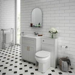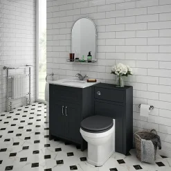 Cruze Bathroom Cruze B-Shaped Shower Bath Suite – 1700mm With Grey Vanity Unit And Toilet