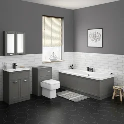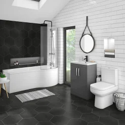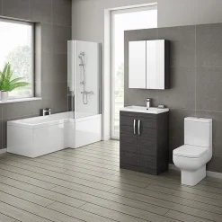 Klyn Bathroom Brooklyn Grey Avola Bathroom Suite + B-Shaped Bath