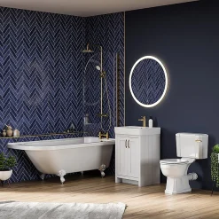A high-quality traditional bath with satin grey front and end bath panels from the Chatsworth range, ideal for creating a period look in your bathroom.