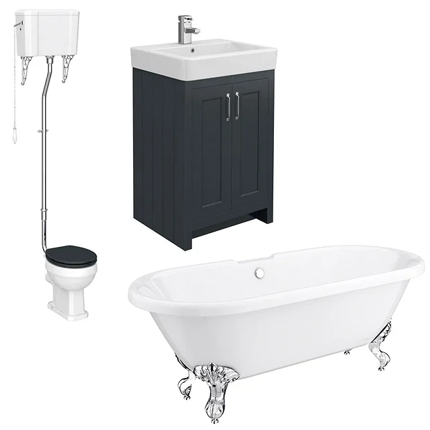 Chatsworth High Level Graphite Roll Top Bathroom Suite
