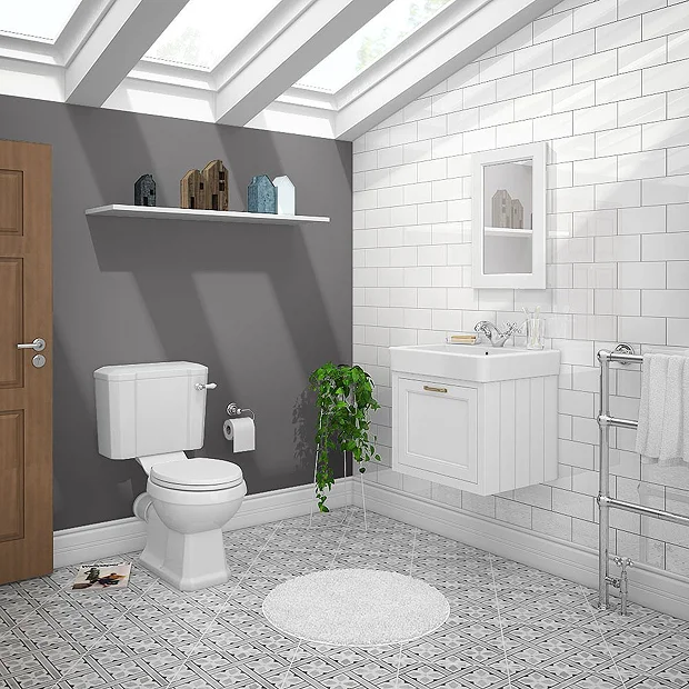 Chatsworth White Traditional Cloakroom Suite (560mm Wall Hung 1TH Vanity + Close Coupled Toilet)
