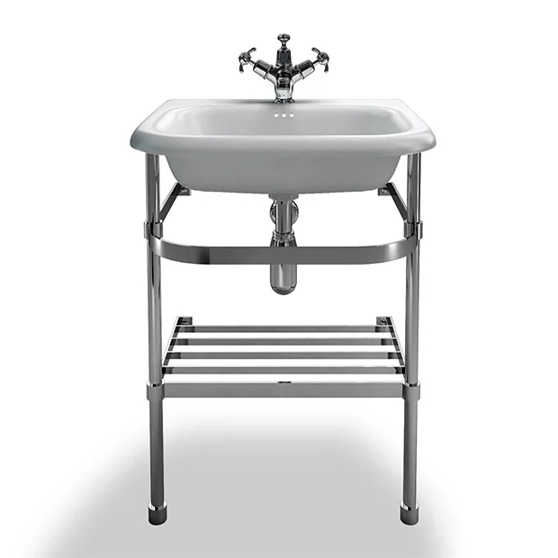 Clearwater – Small Traditional Roll Top Basin with Stainless Steel Stand – W550 x D470mm