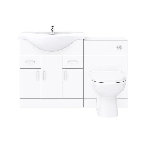 Cove 1250mm Vanity Unit Bathroom Suite + Basin Mixer Tap (High Gloss White – Depth 330mm)