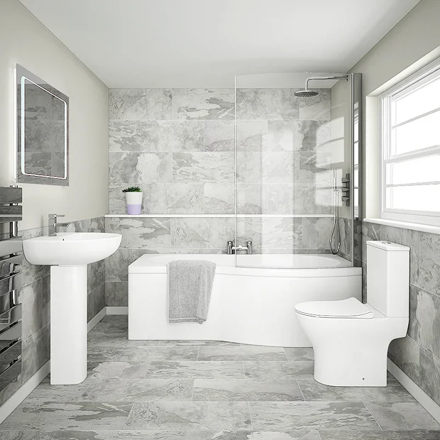 The stunning Cruze curved shower family bathroom suite, features a stunning short projection toilet and basin with a quality 1700mm B-Shaped gloss acrylic shower bath. Transform your bathroom with one of our contemporary designer suites.