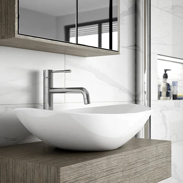 Give your bathroom a designer feel with the curved Hudson Reed Countertop Vessel Basin. This 615mm wide oval shaped sink is made with high quality vitreous china, so it’s both durable and scratch resistant. Its glossy white finish makes it easy to wipe clean, too. This countertop basin has no tap hole, so pairs naturally with a wall mounted tap such as Hudson Reed’s Revolution Industrial Basin Mixer. Alternatively, install it with a high rise basin mixer from the Swift or Summit ranges.