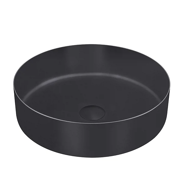 JTP Vos Matt Black Round Stainless Steel Counter Top Basin + Waste – 28CTR400MB
