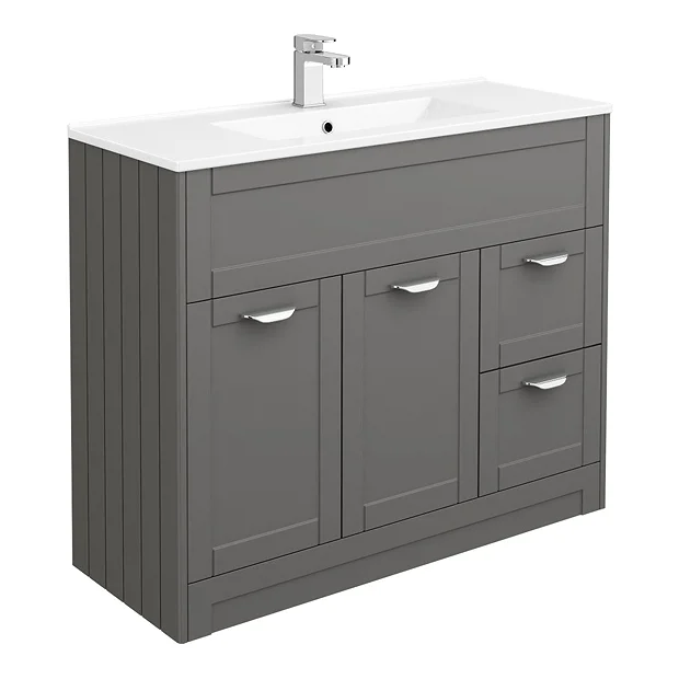 (1) Grey Shaker-Style 1000 Floorstanding Vanity Unit