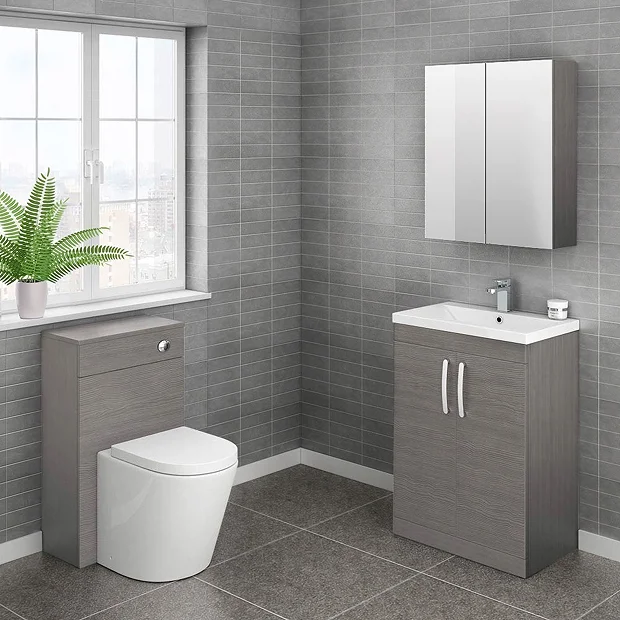 The stylish contemporary Brooklyn grey brown avola textured wood effect cloakroom suite, it’s compact design makes it ideal for smaller spaces and provides great storage space allowing your cloakroom to be clutter-free.