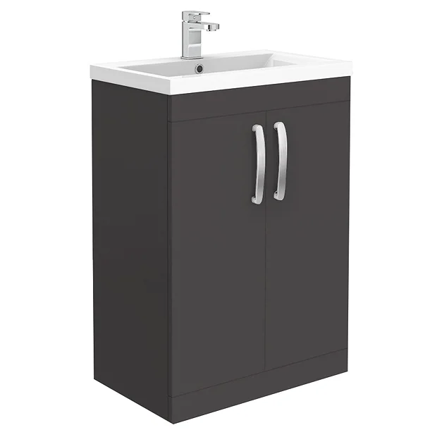 (1) Floor Standing 2 Door Vanity Unit – Gloss Grey (600 x 383mm)