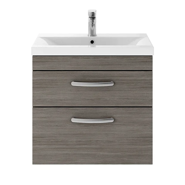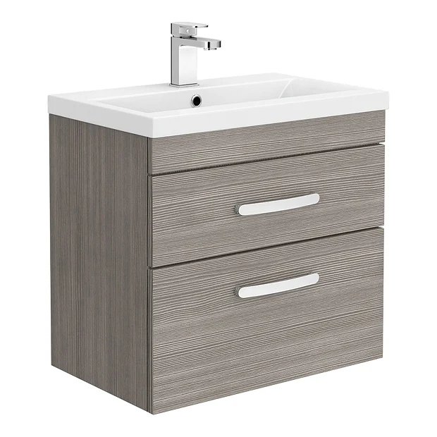 The Brooklyn Grey Avola wall hung cloakroom suite combines up to date looks with practical storage. Features 2 soft close drawers and provides plenty of storage space for toiletries, the Brooklyn wall hung vanity unit is perfect for adding modern style to any bathroom.