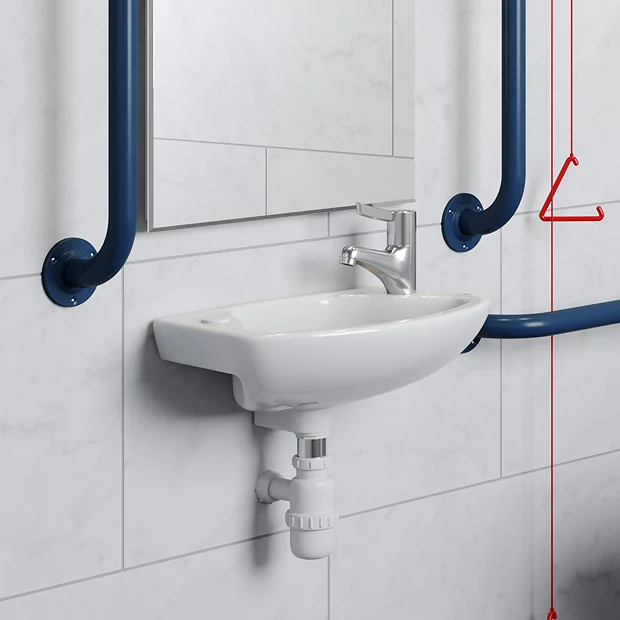 Document M Disability Toilet Bathroom Suite from Milton Bathrooms, this Doc M pack offers a quality, cost effective solution to equipping a disabled toilet washroom with the necessary items. This Doc M Pack is approved and meets all current regulations (certified). The toilet is a close-coupled format and the pack includes a comfort height toilet pan, cistern, basin, lever action mono basin mixer and 5 blue tubular grab rails.