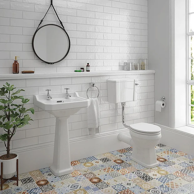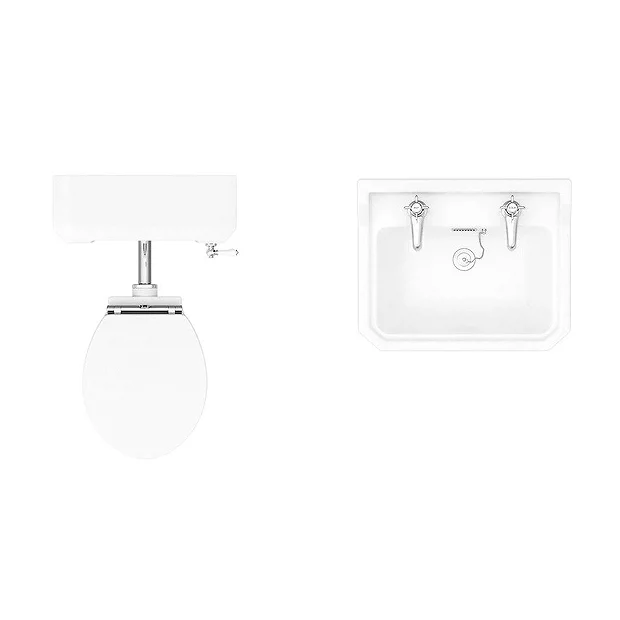 The classical Carlton traditional low level bathroom suite, ideal for creating a luxury period looking bathroom, includes a 2 Tap Hole basin and pedestal set and low level traditional WC pan & cistern. Manufactured from high grade vitreous china in a beautiful white gloss finish. Supplied with a Traditional ceramic cistern lever and white wooden toilet seat. Create your dream traditional bathroom with the Carlton toilet and basin suite.