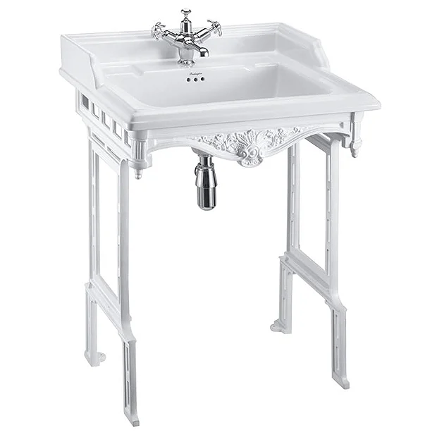 The Classic basin with beautifully designed white aluminium wash stand, crafted and manufactured by the industry leading traditional brand Burlington.