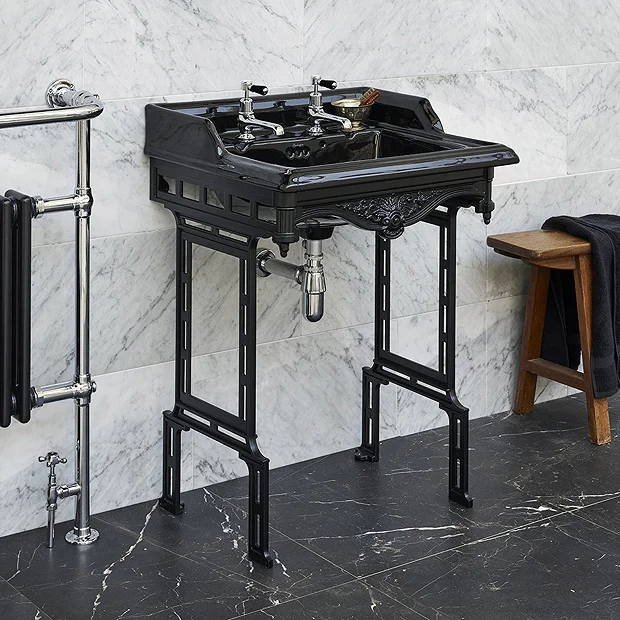 Burlington Jet Black Classic 65cm Basin & Black Aluminium Basin Stand