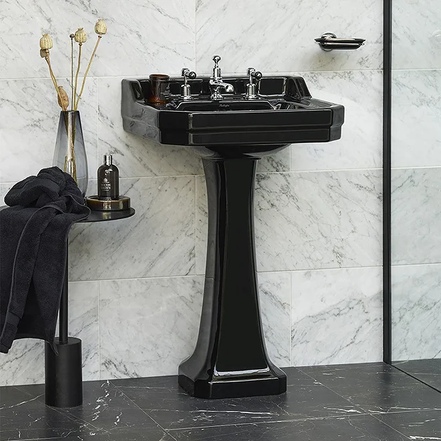 Burlington Jet Black Edwardian 56cm Basin with Standard Pedestal