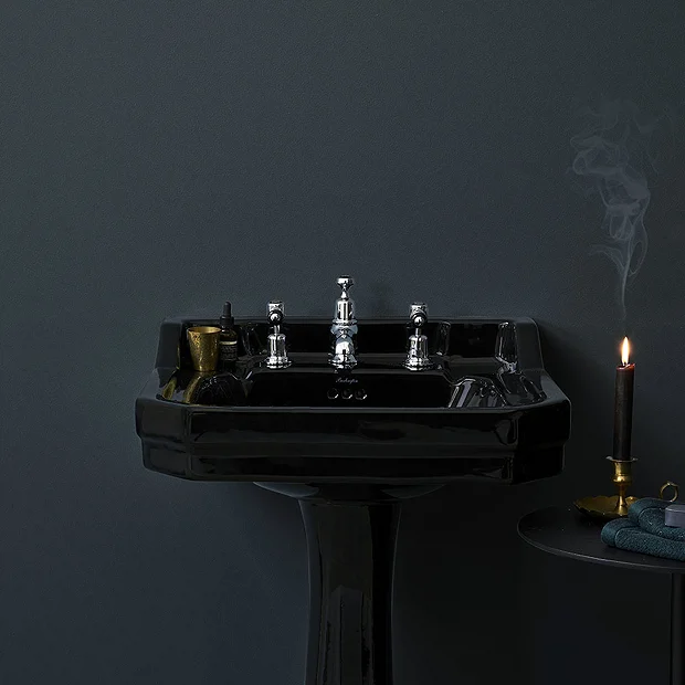 The Burlington Jet Edwardian 56cm Basin with Standard Pedestal is both classically timeless and versatile. The lustrous gloss black basin comes paired with a matching pedestal to complete the look. Available in 1, 2 or 3 tap hole options.