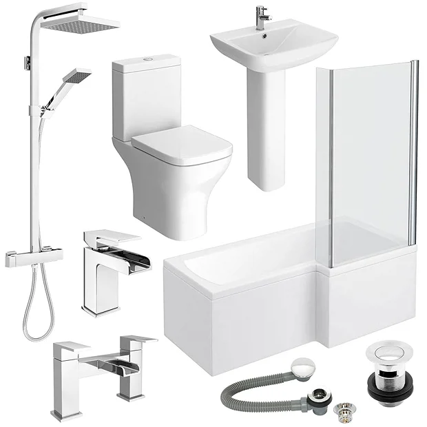 When you need to overhaul your bathroom, the Venice Complete Bathroom Package offers a sleek and simple solution. The L shaped bath is 1700mm long and has a white gloss finish that matches the toilet and basin of this modern bathroom suite. There’s plenty of sparkling chrome on show, while the fixtures and fittings have squared profiles for a contemporary look. The taps boast a waterfall design so water cascades into the basin and bath for a spa like experience. This complete bathroom suite is crafted from durable ceramic, steel and acrylic so you know it’s made to last. Available in Left and Right Handed versions.
