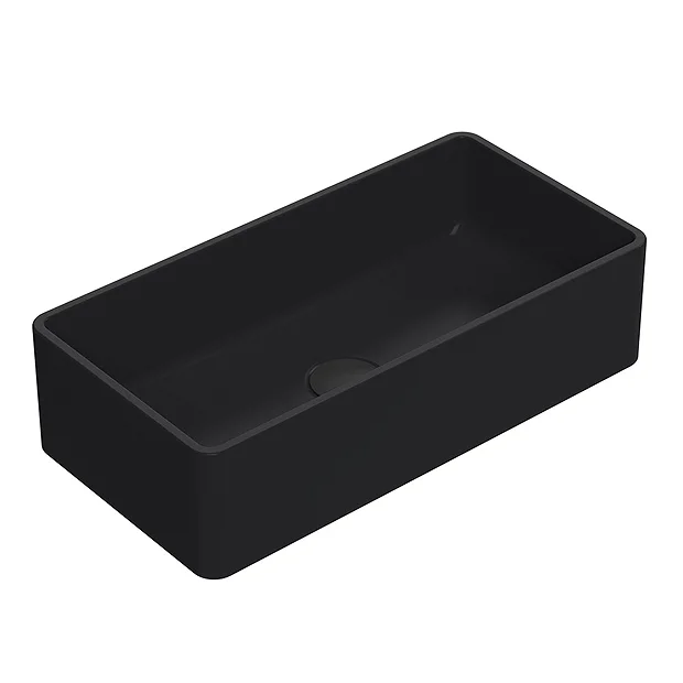 The Venice rectangular counter top basin features soft square lines and a modern minimalist design. Designed to be mounted to a worktop console or vanity unit, the basin is the perfect complement for a high rise tap or wall mounted mixer. Manufactured from vitreous china with a quality matt black finish.