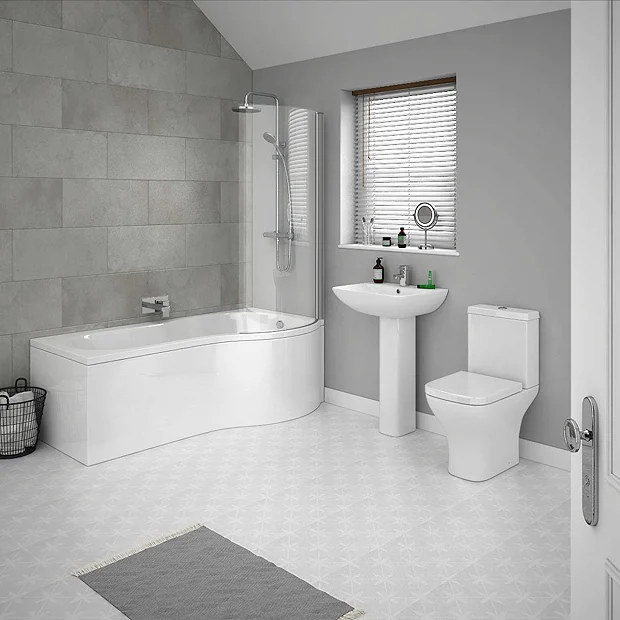 The Venice P-shaped shower bathroom suite is the ideal solution for