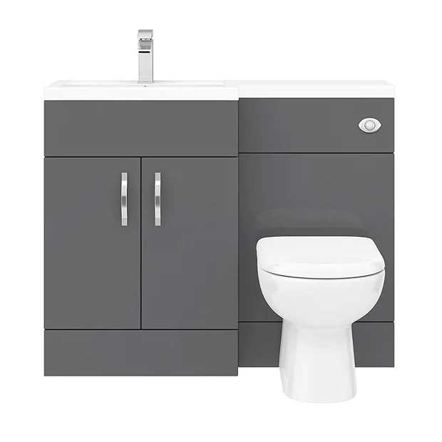The stylish Apollo2 1100mm wide glossy grey bathroom combination unit, perfect for renewing the style in any bathroom. It’s stylish modern design hides all unsightly pipework creating a neat modern streamlined look. Provides great storage space allowing your bathroom to be clutter-free.