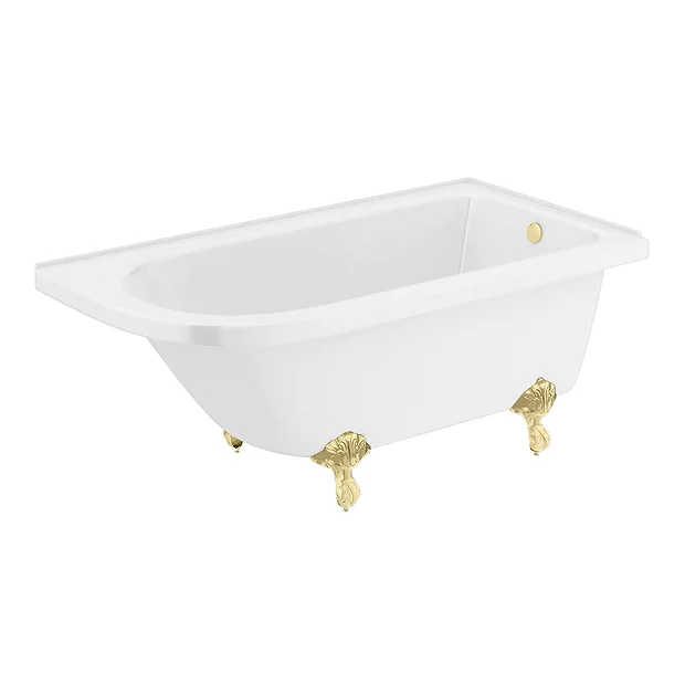 A stunning 1550mm compact roll top showering bath with traditional brushed brass feet, enjoy the feeling of luxury with this classical free standing shower bath. Designed to fit neatly into a corner, this bath is the ideal solution for families looking to add a little luxury, whilst keeping an eye on space.
