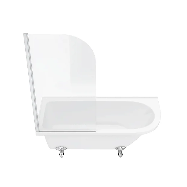 Features a stunning 1700mm long roll top acrylic showering bath with a curved top bath screen and traditional chrome feet. Designed to fit neatly into a corner, this bath is the ideal solution for families looking to add a little luxury, whilst keeping an eye on space. Bath has no tap holes. Please be aware that any tap holes have to be drilled by the customer.