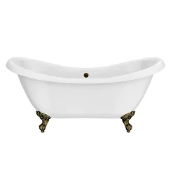 A stunning double ended roll top slipper bath with traditional antique brass feet, enjoy the feeling of luxury with the Earl classical free standing slipper bath. This elegant double-ended bath is the perfect centrepiece for a traditional bathroom. The bath is mounted upon stunning brushed antique brass feet to complete a breathtaking appearance. Made with double skinned acrylic with a superb surface finish.