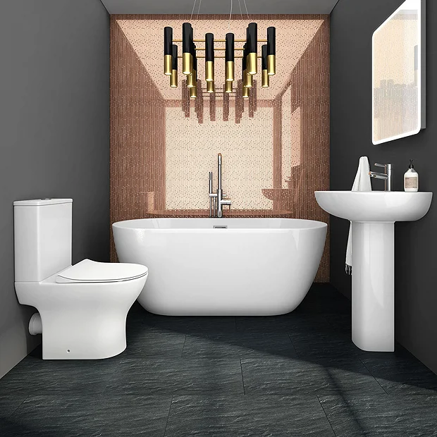 Give a chic minimalist look to your bathroom with the stunning Orion modern small free standing bathroom suite, featuring a quality free standing bath tub and stylish compact ceramic sanitary ware.