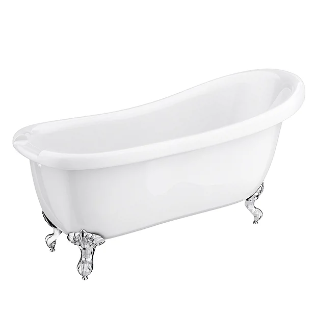This elegant slipper roll top bath is the perfect centre piece for a traditional bathroom. The bath is mounted upon traditional chrome feet to complete a breathtaking appearance. Made with double skinned acrylic with a superb surface finish.
