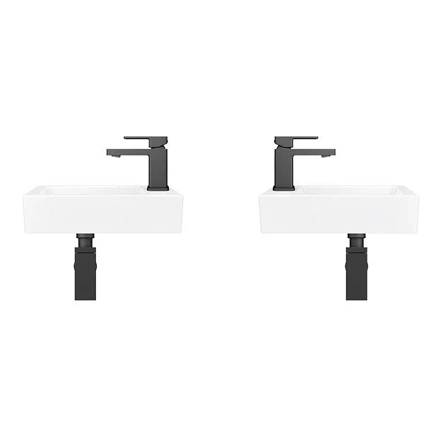 *Package includes left and right hand tap hole basins with square matt black taps, wastes and bottle traps.