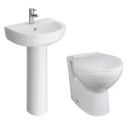 The modern Sofia ceramic back to wall bathroom suite has a contemporary, stylish design that enhances the appearance of any modern bathroom. Made from high grade materials, this product features 1 tap hole basin with full pedestal and a standard back to wall toilet pan.
